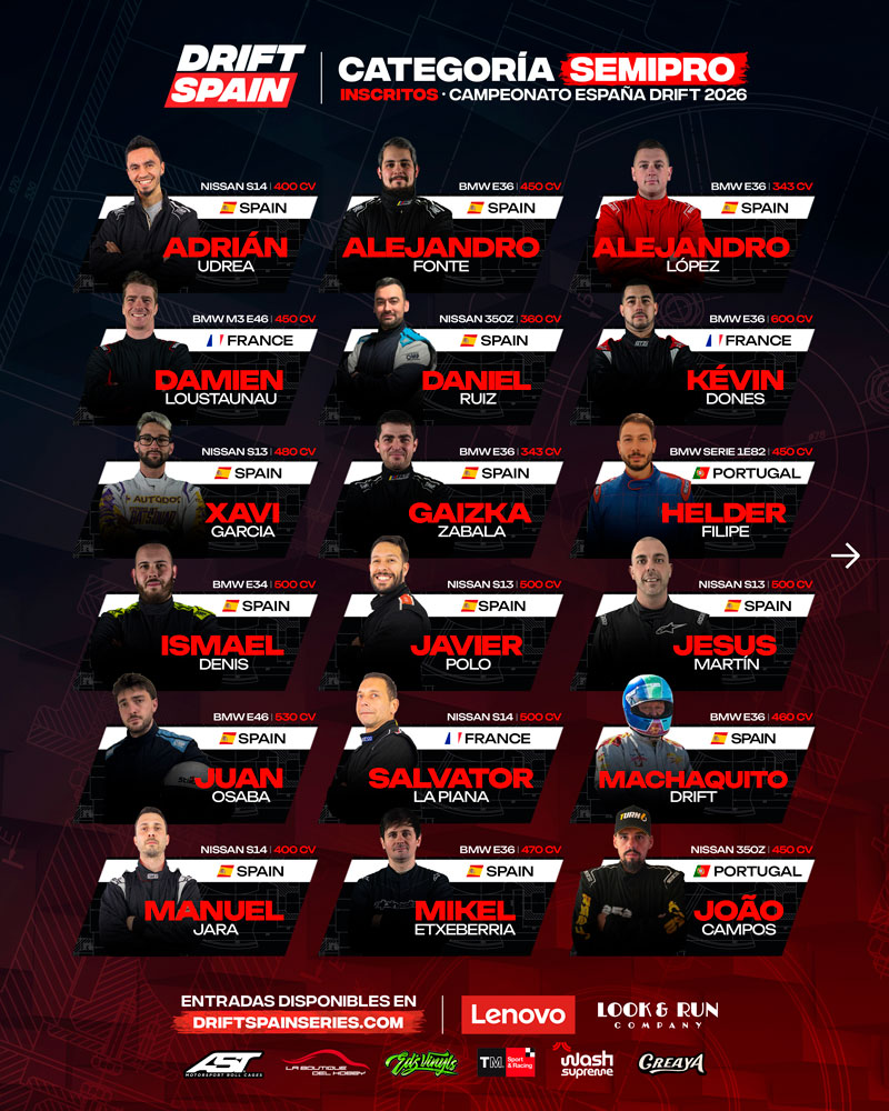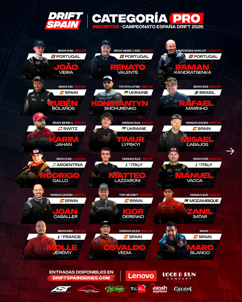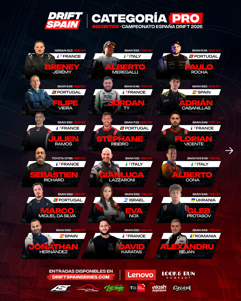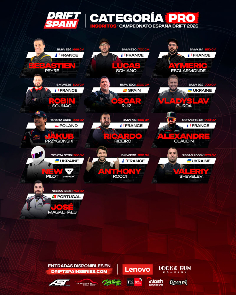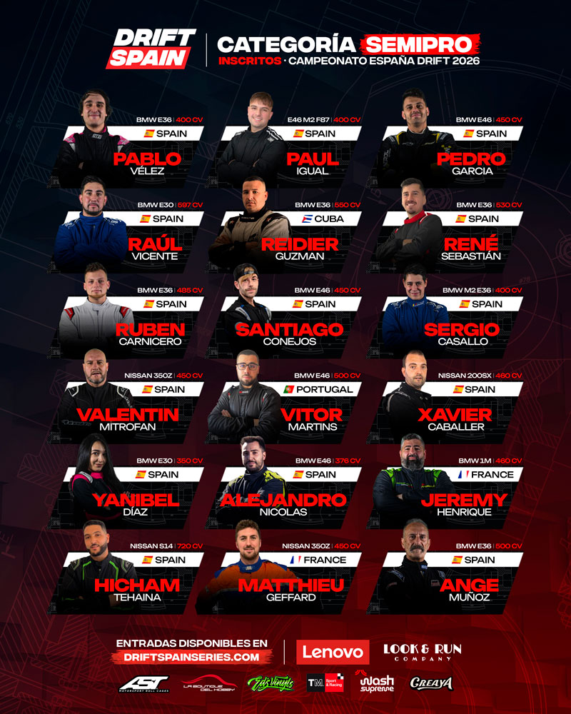 Pilotos Inscritos Campeonato Drift Spain 2026