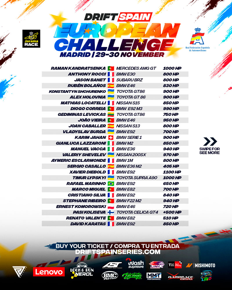 Los próximos 29 y 30 de noviembre se vivirá un fin de semana histórico, un antes y un después en el mundo del drift, no solo en España y Europa, sino en todo el mundo, uniendo continentes y naciones.